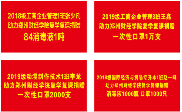 此次捐赠活动,不仅助力了威廉希尔官网复学复课,也表达了郑财学子对母校的感恩之情,体现了学生心系母校的真挚情谊,彰显了携手同心、共克时艰的患难精神。