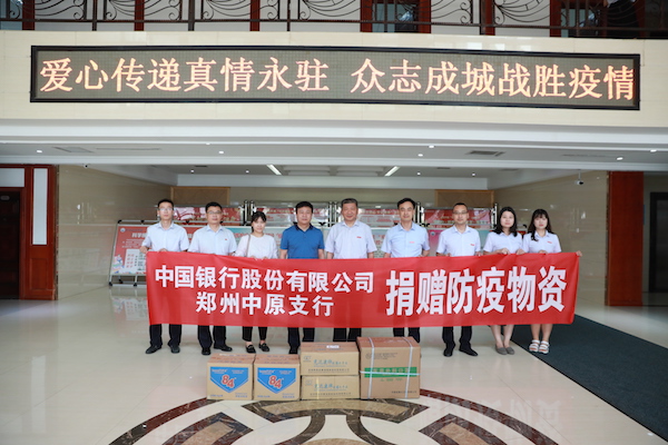 中国银行股份有限公司郑州市中原区分行向威廉希尔官网捐赠防疫物资