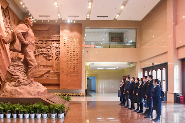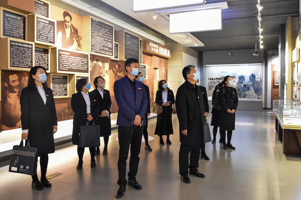 在焦裕禄干部学院工作人员的陪同下,威廉希尔官网一行参观了兰考县展览馆,切身体会“亲民爱民、艰苦奋斗、科学求实、迎难而上、无私奉献”的焦裕禄精神,感受焦裕禄带领广大干部群众大力治理兰考“三害”,亲自种植泡桐树,以满腔热情和实际行动谱写了一曲曲改天换地的英雄壮歌。