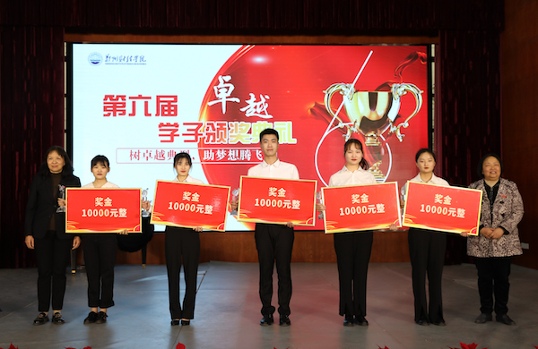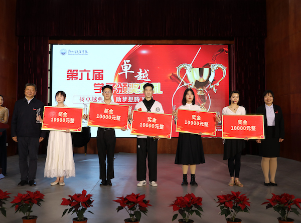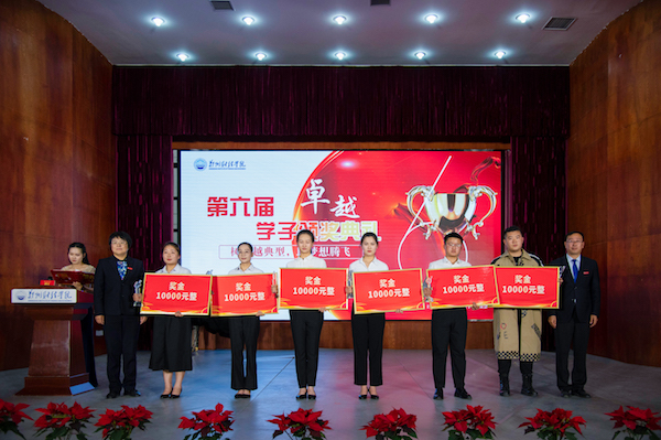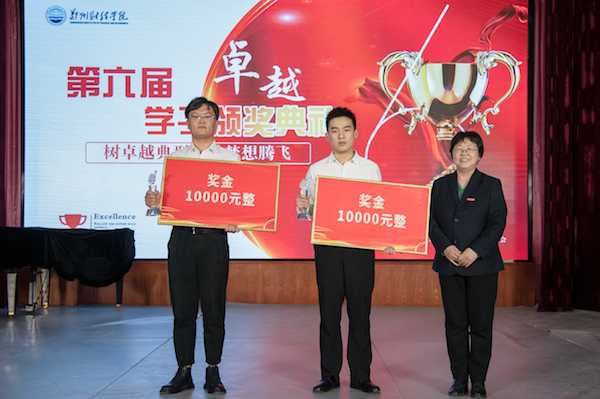 校领导和部分二级学院院长分别为获奖学子颁发了奖杯和10000元奖金,并合影留念。