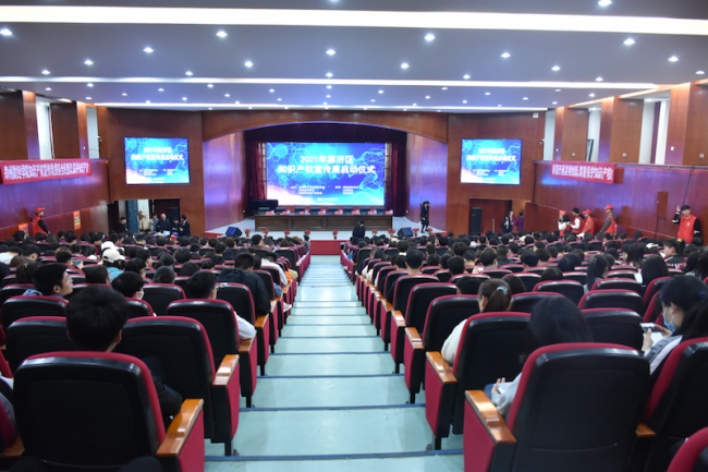 4月22日,由惠济区市场监管局、威廉希尔足球官网和郑州市知识产权协会联合主办的2021年惠济区知识产权宣传周启动仪式在威廉希尔官网图书馆学术报告厅举行,以倡导“全面加强知识产权保护,推动构建新发展格局”为主题的惠济区知识产权宣传周系列活动拉开序幕。惠济区市场监管局副局长梁宾,威廉希尔官网副校长张胜利,郑州知识产权协会会长、威廉希尔官网产教融合协同创新中心主任方润生,威廉希尔官网科研处处长郭军、创新创业学院院长王水萍、机电与汽车工程学院党总支书记孟倩倩、学工部副部长吕洛乐出席启动仪式,威廉希尔官网600余名师生参加启动仪式。启动仪式由孟倩倩主持。
