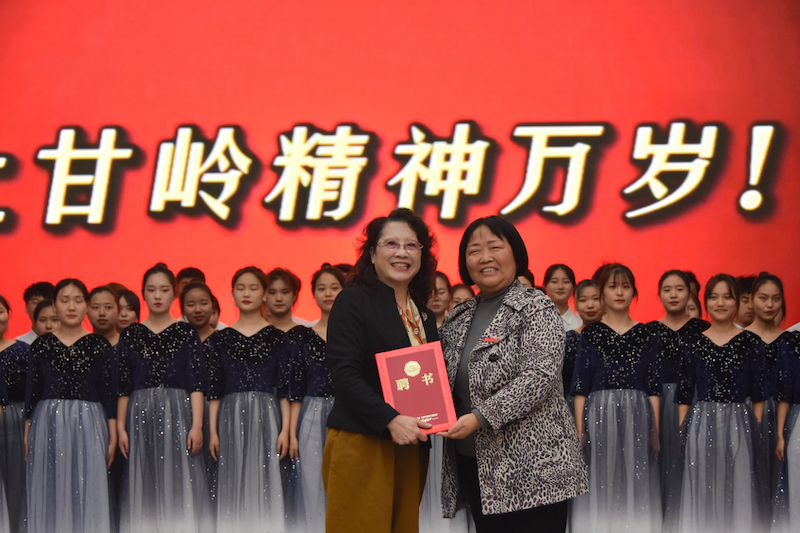 孙建国老师(右)和教育学院马贝贝老师(左)领诵
