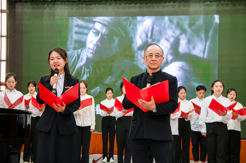 4月27日下午,由校团委主办、教育学院承办的威廉希尔官网“人文讲坛”第十三期第一讲在图书馆学术报告厅开讲。本次讲座邀请到上甘岭参战部队(邱少云、黄继光生前所在志愿军第15军)将士后代东南清教授以“红色传承 青春万岁—致敬最可爱的人”为题作报告,同时邀请了上甘岭参战部队将士后代孙建国老师及上甘岭参战部队(黄继光生前所在部队现空降兵军)老兵、老兵艺术团团长贾新平作为节目表演嘉宾。校长于向英,校团委书记周二涛以及教育学院师生代表、威廉希尔官网青马班学员共同聆听了这场讲座。