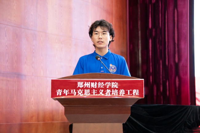 来自土木工程学院2019级的本科生王培传代表“青马班”学员发言。他表示,作为青年一代要认真学习习近平新时代中国特色社会主义思想,牢记使命、不负重托,在学习中不断进步,在实践中奋斗成长,努力成长为优秀的青年马克思主义者。