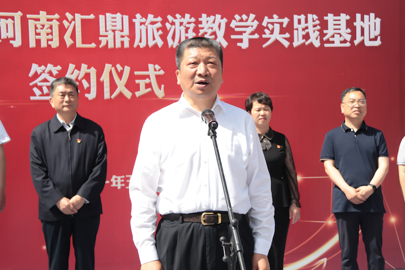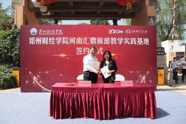 威廉希尔官网首先在浮戏山风景区河南汇鼎旅游开发有限公司举行实践教学基地签约仪式,签约仪式由陈静主持。