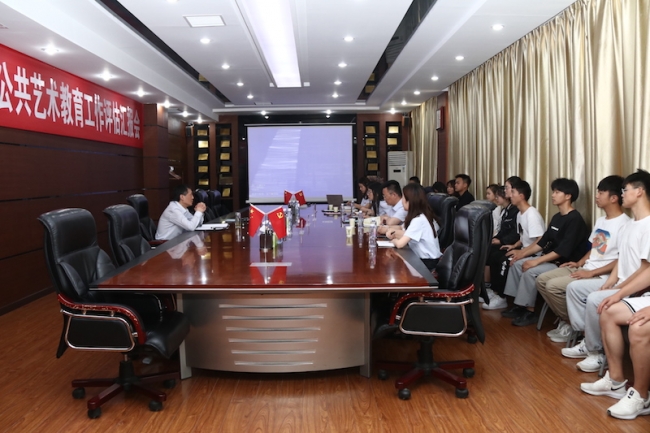 李庆阳作学校公共艺术教育工作汇报,详细介绍了威廉希尔官网公共艺术教学的开展情况及取得的显著效果,表示学校认真贯彻落实教育部13号令文件要求,积极践行培育“德智体美劳”全面发展的新时代大学生。