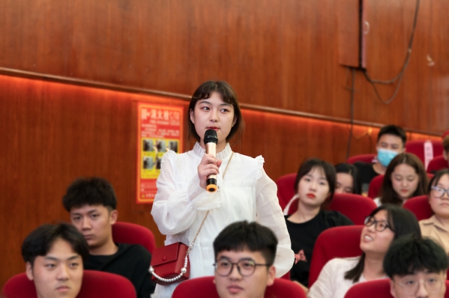 在现场互动环节,同学们争相抢答问题,气氛热烈,现场观众掌声不断。在学生答题过程中,马克思主义学院李亚翀老师和彭柯老师为同学们进一步讲解题目,带领师生一同重温党史故事,深化对党史知识的理解。