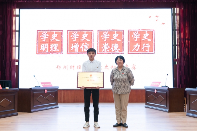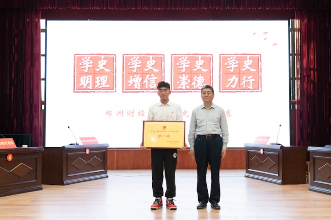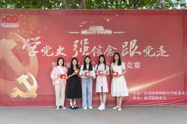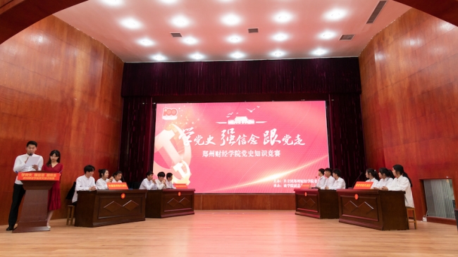 决赛现场分为“单兵突进”“兵团作战”“抢夺先机”三个环节,包括个人答题、团体答题、抢答题等多种题型,结合音频、视频等多种形式,考察选手对党史知识的理解和掌握程度。赛场上,选手们各显身手,相互配合,争分夺秒答题,各参赛队伍在赶超比拼中激烈角逐,热情满满。参赛选手们用扎实的理论基础、过硬的心理素质,展示了郑财学子斗志昂扬的精神风貌。