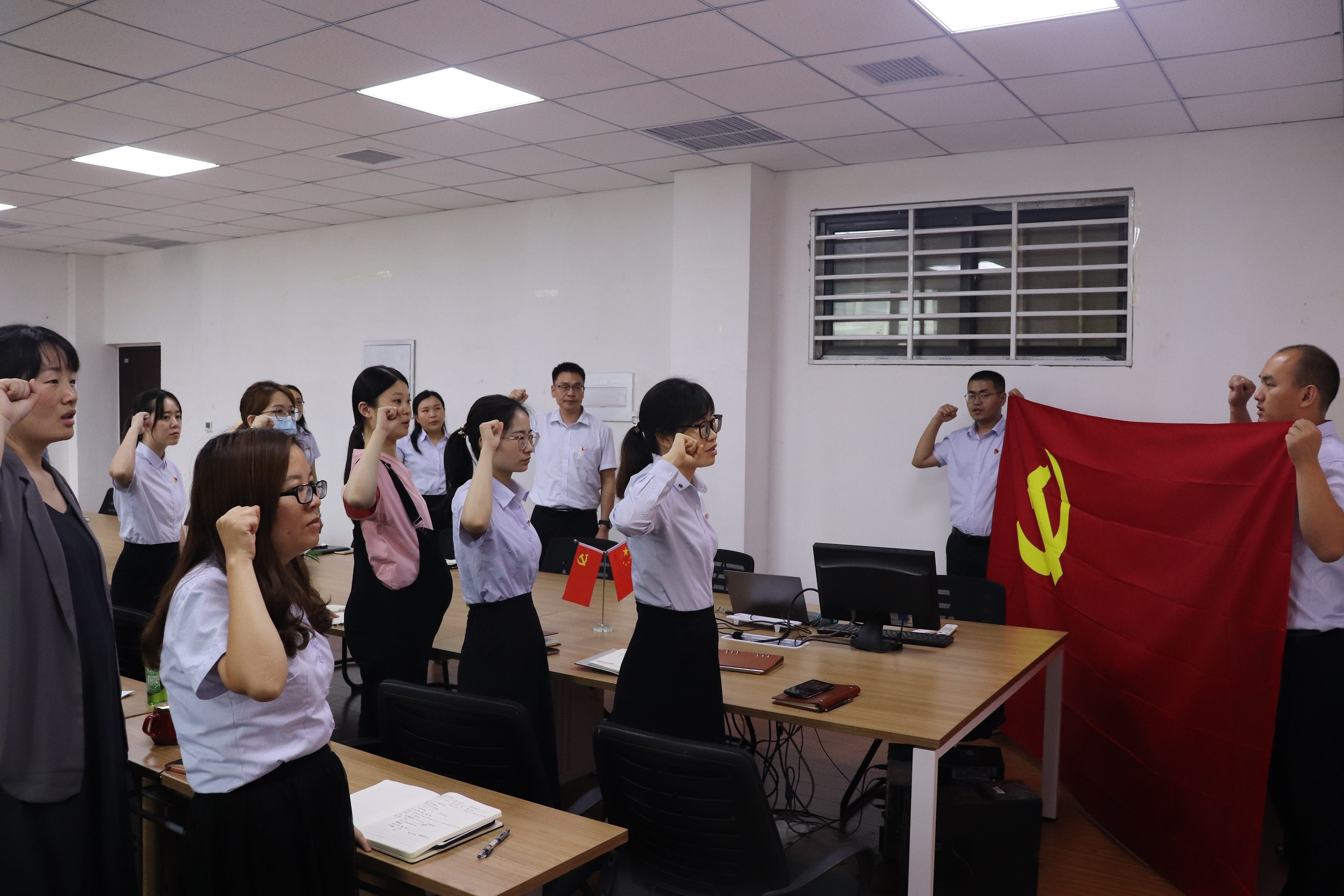 最后,全体教师党员共同观看了《入党誓词的演变》专题教育片,并在党旗下重温了入党誓词。