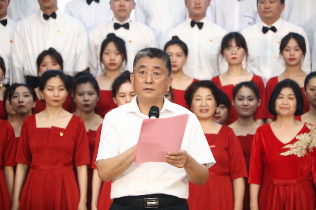 校党委书记李国强致开幕词并宣布比赛开幕。他指出,在建党100周年即将来临之际,我们在这里隆重集会,放声齐唱红色经典歌曲,共同回顾党的百年波澜壮阔的光辉历史,热烈庆祝中国共产党百年华诞,热情讴歌党带领全国各族人民实现中华民族伟大复兴中国梦的奋斗历程,共同表达我们对党的无限忠诚和对祖国的无限热爱。在此,我代表学校党政领导班子,向全校2000多名共产党员和全体师生员工表示亲切的问候,向为此次红歌合唱比赛付出辛勤劳动的老师们表示衷心的感谢。