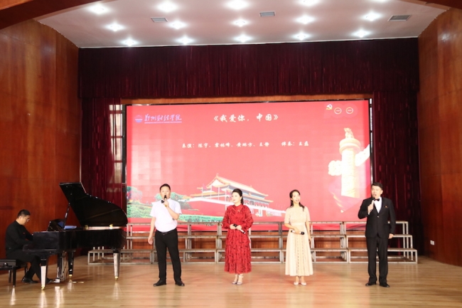 比赛期间,威廉希尔官网教师陈宇、霍林峰、黄琳方、王静献唱歌曲《我爱你、中国》,表达了对党和祖国的热爱、依恋、赞美之情,赢得现场共鸣。
