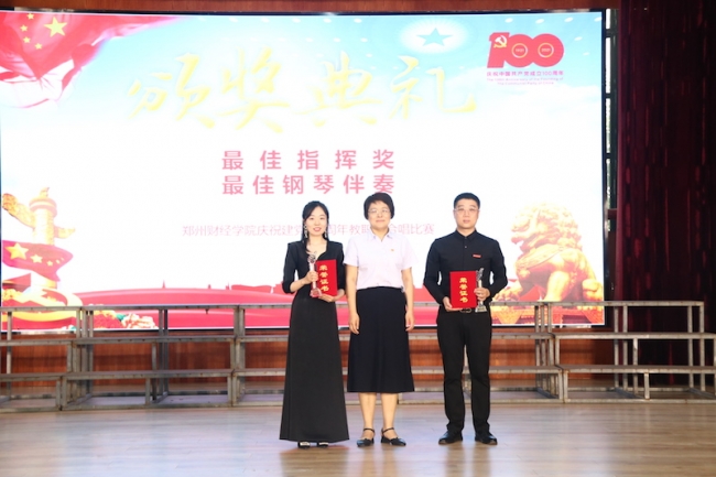 经过激烈的角逐,最终,教育学院合唱团荣获一等奖;会计学院合唱团、商学院合唱团、机关二和管理学院合唱团获得二等奖;机关一合唱团、机关四和统计学院合唱团、信工和金融学院合唱团、外语和机电学院合唱团、艺术和土木学院合唱团、机关三合唱团获得优秀奖。现场还颁发了最佳指挥奖获得者教育学院吕铭聪老师和最佳钢琴伴奏奖获得者教育学院王磊老师;最佳创意奖外国语学院和机电学院合唱团,最佳人气奖机关二和管理学院合唱团。校领导依次为获奖队伍颁发奖牌并合影留念。