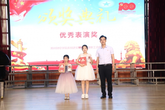此外,校工会主席张彪还为参与领唱的两位教职工子女颁发优秀表演奖,为表杨和鼓励小朋友的精彩表现,奖品为英雄牌钢笔,贴合了今天唱英雄赞英雄的主题,表达了对郑财人的下一代成长成才的嘱托与祝愿。