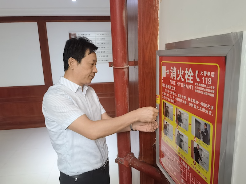 于向英带队对创新创业学院的重点区域进行了安全隐患大排查,重点检查了安保值守、消火栓配备、窗户安全网和防护网安装等方面,每到一处都详细查看,对存在的问题当场提出整改意见,杜绝校园安全事故的发生。
