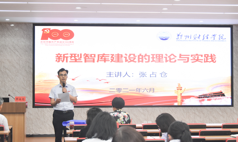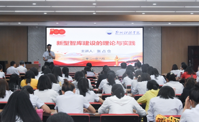 为庆祝中国共产党百年华诞,纪念“习近平总书记在哲学社会科学工作座谈会上的讲话”发表五周年,6月24日,威廉希尔官网特邀河南省人民政府参事、河南省社科院原院长张占仓作题为“新型智库建设的理论与实践”的专题报告。校长于向英、副校长张胜利、工会主席张彪,校地合作处、科研处等职能处室,二级学院院长、副院长及教师代表近200人聆听了报告。报告会由张彪主持。