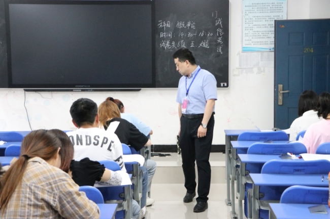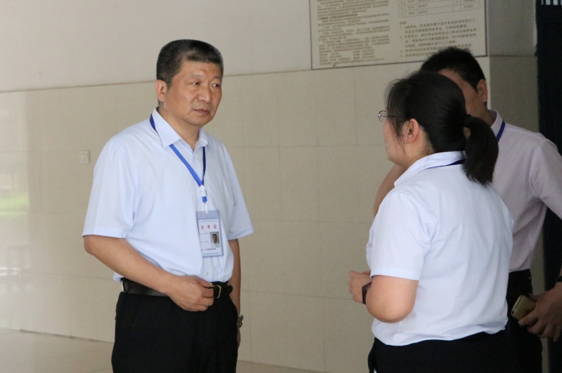 6月26日,校长于向英、常务副校长李庆阳、纪委书记李赞在校长办公室、教务处、教学质量监测与评估中心相关人员陪同下,深入考场巡视检查本学期期末考试工作。