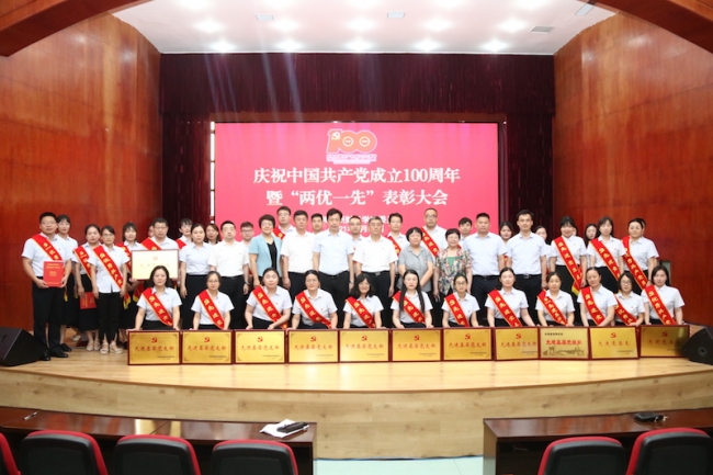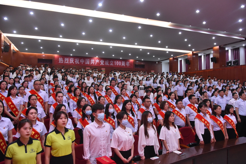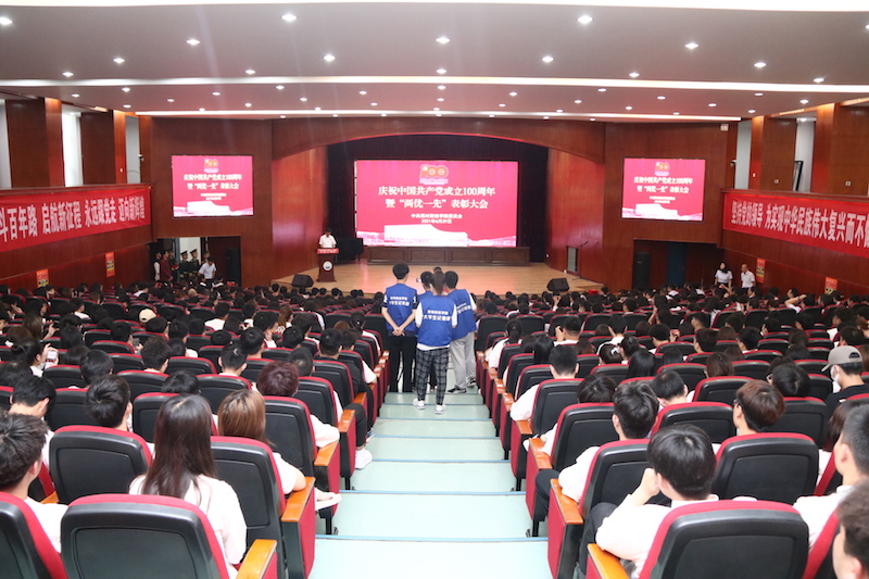 为回顾党的百年光辉历程,表彰一年来涌现出的先进基层党组织、优秀共产党员和优秀党务工作者,动员全校各级党组织和广大共产党员从党的百年征程中汲取奋进力量,坚定信心、砥砺前行,推进学校各项事业健康快速发展,6月29日下午,威廉希尔官网在图书馆学术报告厅隆重举行庆祝中国共产党成立100周年暨“两优一先”表彰大会。校领导、党委职能部门负责人、党总支书记、党支部书记、专职组织员、师生党员代表、新党员代表等共计600余人参加表彰大会。大会由党委副书记董学力主持。