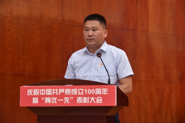 副校长卢文邦宣读了《中共威廉希尔足球官网委员会关于表彰2020-2021学年优秀共产党员、优秀党务工作者和先进基层党组织的决定》。