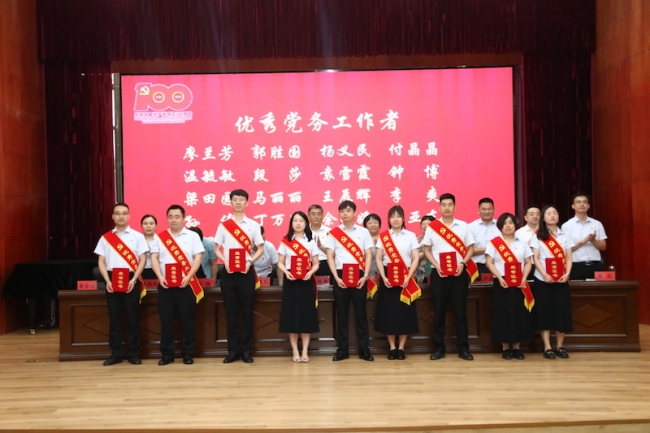 会计学院党总支、金融学院党总支、管理学院党总支、土木工程学院党总支和机关二党总支荣获“先进党总支”;机关一党总支团学党支部、会计学院党总支教工第一党支部等12个党支部荣获“先进党支部”;谷峥、郑留燕、徐静、张利等27人被评为“优秀共产党员”,郭胜国、马丽丽等17人被评为“优秀党务工作者”。校领导依次为受到表彰的集体和个人颁奖。