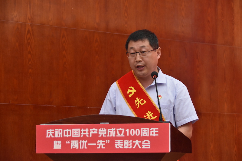 信息工程学院党总支副书记张永代表优秀共产党员发言。他结合自己积极向党组织靠拢的经历,分享了学习感想和心得体会,并从教学科研、行政管理、辅导员管理三方面汇报了专业学习和能力提升的过程,表示要向习近平总书记提出的四有好老师的标准看齐,以强烈的事业心、进取心、使命感、责任感为郑财更好更快发展做出贡献。