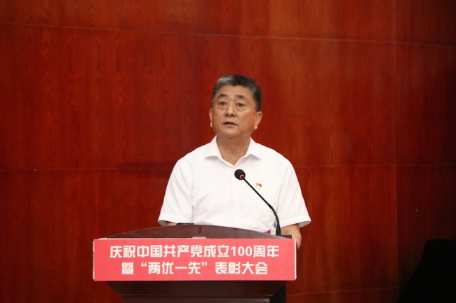 李国强作重要讲话。他回顾了中国共产党带领人民开天辟地完成救国大业、改天换地完成兴国大业、翻天覆地推进富国大业、惊天动地实现强国大业的光辉历史,追忆党走过的100年艰辛而辉煌的风雨历程,勉励每一位共产党员始终牢记党的宗旨,赓续红色血脉,发扬光荣传统,发挥先锋模范作用,不断激发前进动力,汇聚起全面建设社会主义现代化国家、实现中华民族伟大复兴中国梦的磅礴力量。他充分肯定了学校各级党组织和广大党员干部在学校教育教学事业发展进程中做出的积极贡献,并号召我们继续深化党建引领,真正实现党建工作与业务工作的相互促进、协调发展;深入推进思政课建设,全面构建全员全程全方位的“三全育人”大格局;聚焦学校中心工作,充分发挥党组织的战斗堡垒作用和党员的先锋模范作用,为学校事业高质量发展、跨越式发展贡献智慧和力量。