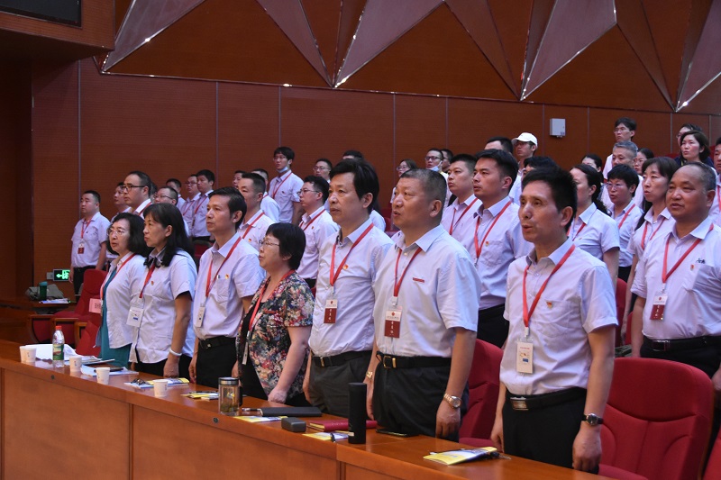 全体参训学员起立奏唱国歌。