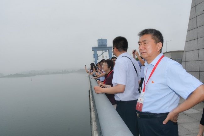 随后,参训学员赴湖北十堰丹江口大坝进行参观学习。学员们登上大坝坝顶,俯瞰丹江口水库碧波万顷,水雾氤氲。