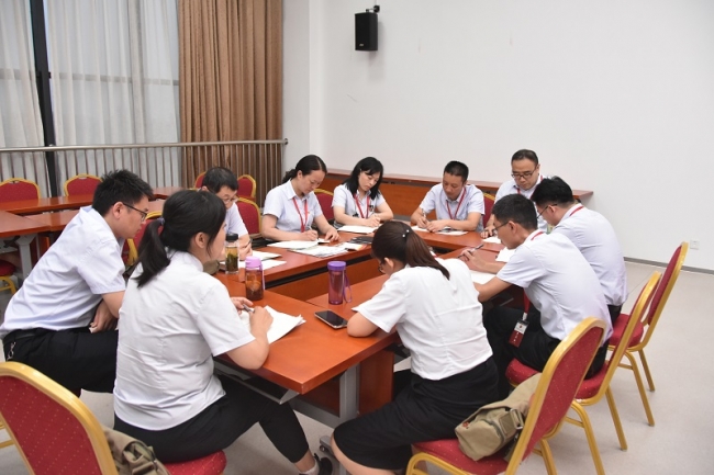 晚上7点,参训学员围绕“本科教学工作合格评估”主题进行分组研讨;并结合实际工作畅谈南水北调精神及其时代价值。讨论会上,大家畅所欲言,共同总结学习,认真完成此次培训的学员作业。
