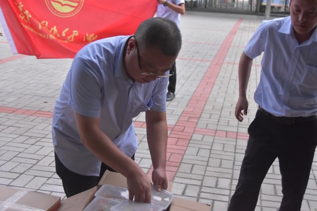 学校教职工搬送爱心盒饭