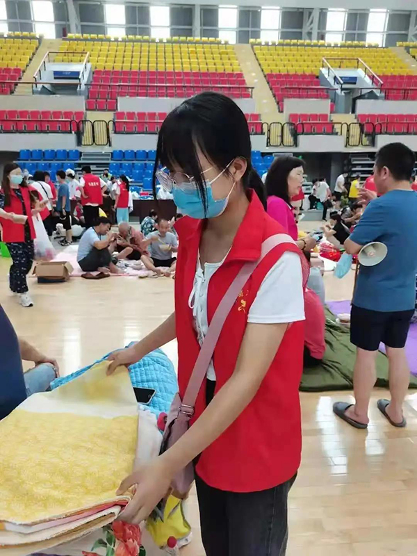 很多受灾群众没来得及带上随身物品就被送到了安置点,基本生活保障需要各方协调,谷雨和其他志愿者一起为受灾群众发放被褥,一天不喝水不上厕所,忙碌十几个小时。她说:“很累却很幸福,穿着红马甲、扛着被褥路过父老乡亲时,一种责任感油然而生,突然觉得我也是个大人了,‘00后’的肩膀也能扛起重担!”