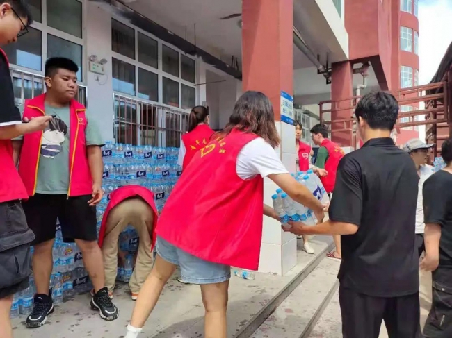 在村民安置点,不断有企业会送来捐赠物资,看着各企业送来的物资,尹思维同学深深被感动。她说:“我更加深刻感受到一方有难,八方支援的精神。洪水如猛兽,虽然我不能像男生一样能冲上抗洪一线去帮忙,但是作为一名入党积极分子,我将尽自己最大的能力在后方作出贡献。”
