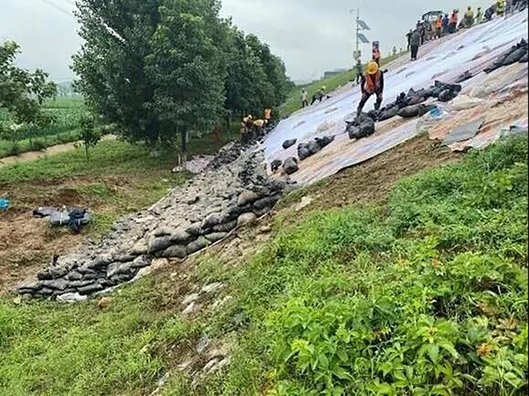 布置防汛带现场