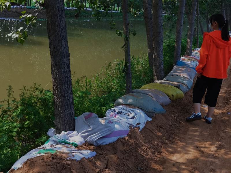 20级注会5班苗新颖在新乡市参加汛期志愿工作。她说:“21日上午8点左右,接到新乡市政府通知,人民胜利渠黄河口要决堤了!需要大量志愿者来支援黄河口,在家等通水通电的我感觉这件事情刻不容缓。随后就和家人到达指定地点,迅速投入到紧张的工作中。志愿者们有序地排成一排传沙袋,有人装沙子,有人撑袋子,系口子,经过一天时间形成了沙袋墙,决堤的地方终于堵住了!直到25日上午,我和很多志愿者仍轮流守在黄河口旁怕再次决堤,我很荣幸在守护自己的家园中,贡献了一份力量!”