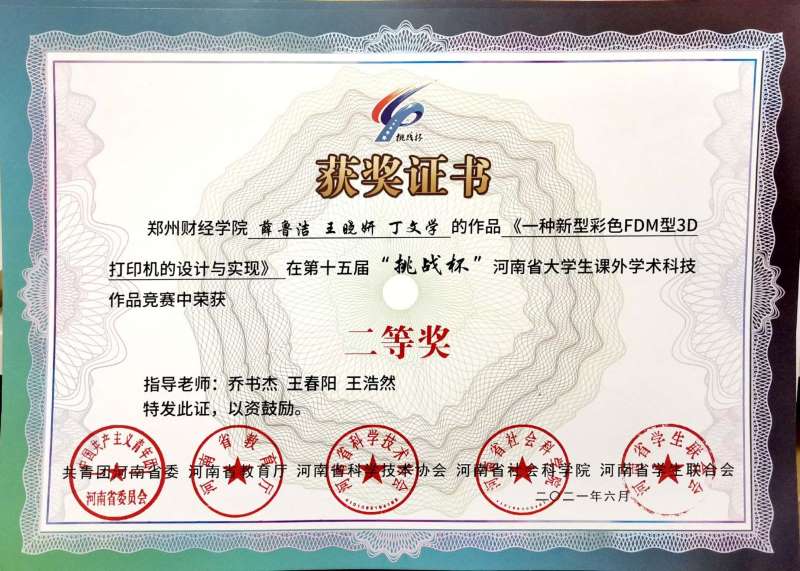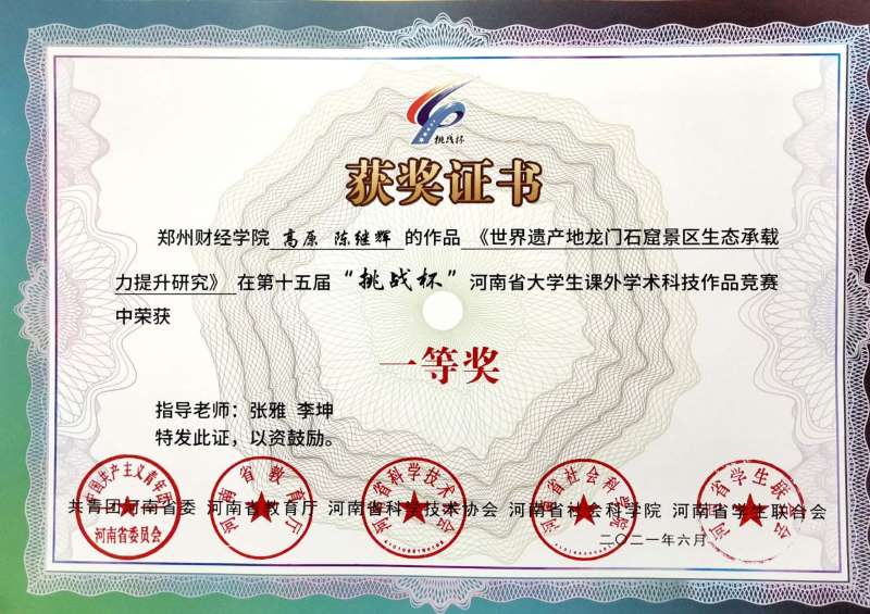 经过省赛激烈角逐,威廉希尔官网选送的22项作品中,管理学院张雅、李坤老师指导的作品《世界遗产地龙门石窟景区生态承载力提升研究》和商学院聂攀科、高晓光、周倩老师指导的作品《郑州市经济高质量发展的现状、问题及对策研究——基于成都、武汉、西安的比较分析》两项获得省赛一等奖,智能工程学院乔书杰、王春阳、王浩然老师指导的作品《一种新型彩色FDM型3D打印机的设计与实现》获得省赛二等奖,会计学院许玲玲、张荣静、郭阳萍老师指导的作品《环境污染专项整治效果评估调查研究报告——以河南省为例》等12项作品获得省赛三等奖。