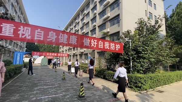 学生报到期间,要严格按照返校批次入校,原则上不在当日报到范围内的学生,当日不予准入。除师生员工外,一切校外人员包括学生家长禁止入校。入校学生需按照学院、专业间隔一米有序排队入校。学生入校前接受健康码、行程码、48 小时内核酸检测阴性证明检查,并带好口罩,依次通过测温通道,体温正常者方可入校。体温异常者须至分诊台二次测温,带至留观区进行医学观察,医务人员询问病史,联系定点医院并告知学生家长,学校派人送学生就医,相关人员做好防护。辅导员做好患病学生追踪管理,疫情报告人及时上报辖区疾控中心和区属疫情防控领导小组教育专班。