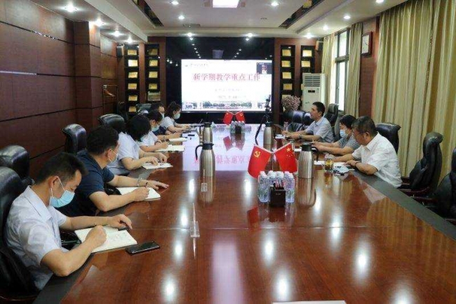 张顺利安排新学期教学重点工作。他首先简要回顾了暑假期间2021版人才培养方案修订、新增本科专业申报、课程表编排、教材征订、实验教学软件论证、评建工作等,结合学校暑期教室、实验室改建和实验教学软件采购情况,从本科教学工作合格评估的角度介绍了线上教学与重构教学模式,并反馈了2021年秋季学期第一周线上教学监控情况。同时,他对人才培养方案相关工作作安排部署,强调了此项工作的重要性,详细分析具体工作要求,并就“深化产学研合作教育”这一观测点提出系列举措。关于实习工作,他要求在管理制度、培养方案中的环节设置、实习材料以及现场考察等方面落实到位。关于推进课程过程性考核,他介绍了丰富的考核形式供教师参考。各教学单位要利用线上教学的契机,提高教师教学能力和教学水平,明确教师的基本职责;梳理学生专业基本理论与技能掌握情况,考察学生专业能力。在此基础上,他强调,学校评建工作已经进入最后一学年的关键时期,全校各项目组、各教学单位要做好以评促建、促改、促管的四个转变,一是从理念性到实践性的转变,二是从一般性到针对性的转变,三是从必要性到原则性的转变,四是从重要性到紧迫性的转变,克服疫情影响,实现全面达标。