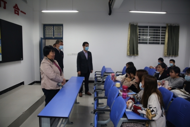 10月12日上午,在校长于向英等在校领导的带领下,由教务处、学生处、实验室管理处、教学质量监测与评估中心和督导办等部门负责人联合组成的教学秩序检查组对恢复线下教学的第一天课程开展情况进行检查。