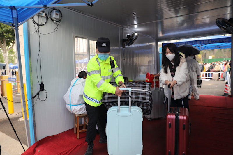 教育学院志愿者吴传玉说:“今天主要的工作就是迎接新生,我们不仅要帮助新生放置行李做好登记工作,带领新生进行报到,还要帮助他们把行李拿回宿舍。”问到她在这次志愿活动中最开心的事时,她说:“虽然搬运行李很累很辛苦,但是能够帮助到21级的学弟学妹们,自己就很开心,劳动最光荣!”