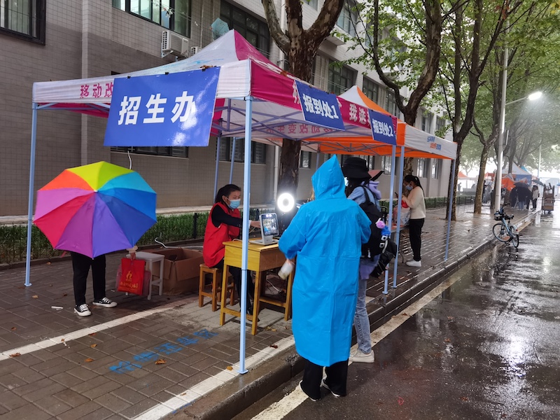 信息工程学院2020级软件技术专业褚文芳说:“今天的迎新活动虽然下雨,但我们都坚守在自己的岗位上。第一次迎接学弟学妹们,内心非常激动,一定要尽自己最大的努力为学弟学妹提供帮助。学弟学妹们的大学生活刚刚开始,希望他们能够好好规划自己的大学生活,以积极向上的态度过好每一天。”