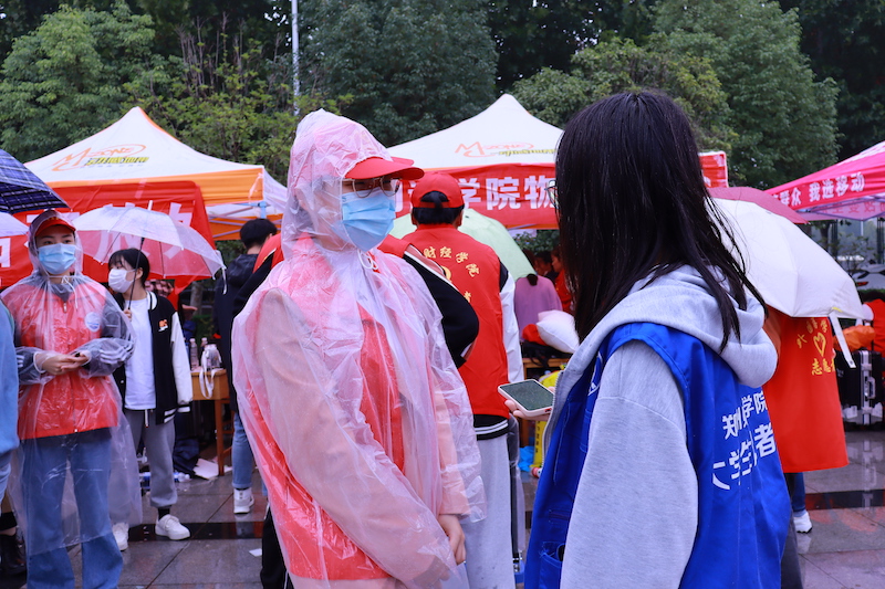 外国语学院2020级商务英语专科1班王影说:“今天是我第一次来参加志愿服务活动,虽然天气不太好,需要穿着雨衣为新生搬行李,送东西,行动不太方便,但我觉得这是一件非常有意义的事情。被新生叫一声学姐,即使累,内心也是非常温暖的。建议学弟学妹们多参加一些班级、学院和社团活动,丰富自我,在学习上认真努力,保持良好的作息习惯,早睡早起,拥有一个多姿多彩的大学生活。”