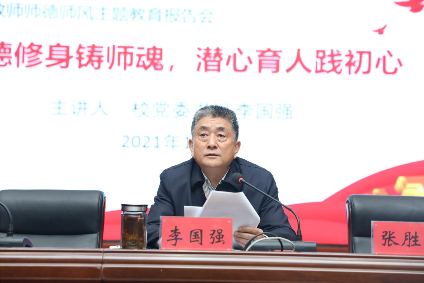 10月19日下午,威廉希尔官网在图书馆学术报告厅举行2021年新教师师德师风主题教育活动,校党委书记李国强等校领导出席会议,各二级学院党总支书记,党委办公室、党委宣传部、教师发展中心以及2021年全体新入职教师参加会议,会议由副校长张胜利主持。