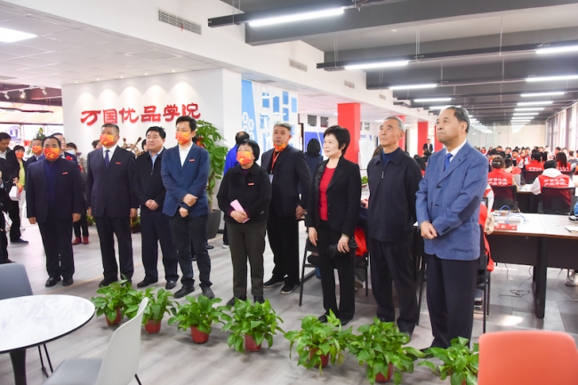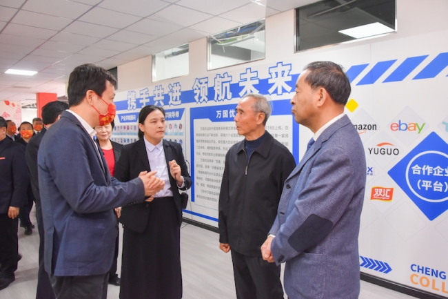 论坛期间,出席领导及受邀嘉宾前往万国优品产业学院实地参观,了解学院建设情况,与学院师生亲切交流。