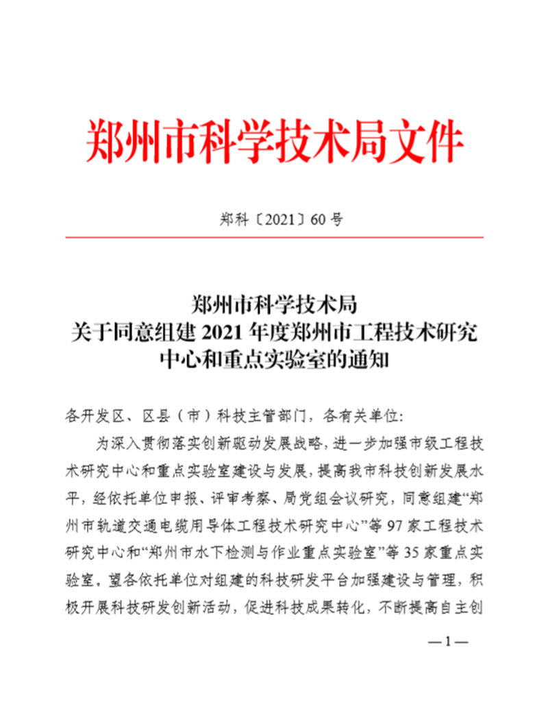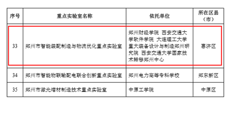 11月8日,郑州市科学技术局下发了《关于同意组建2021年度郑州市工程技术研究中心和重点实验室的通知》(郑科〔2021〕60号)文件,正式批准威廉希尔官网组建郑州市智能装配制造与物流优化重点实验室。这标志着威廉希尔官网在科研创新平台建设方面取得了新的突破。