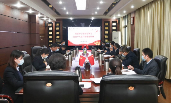 党委副书记董学力传达学习中国共产党第十九届中央委员会第六次全体会议公报。中国共产党第十九届中央委员会第六次全体会议,于2021年11月8日至11日在北京召开,全会审议通过了《中共中央关于党的百年奋斗重大成就和历史经验的决议》。全会从13个方面总结了新时代党和国家事业取得的成就、从10个方面总结了中国共产党百年奋斗的历史经验、从5个方面指出了中国共产党百年奋斗的历史意义、对习近平新时代中国特色社会主义思想的主题作了新表述、对习近平新时代中国特色社会主义思想的历史地位作了新表述、对实现第二个百年奋斗目标提出了方向,具有十分重大的意义。
