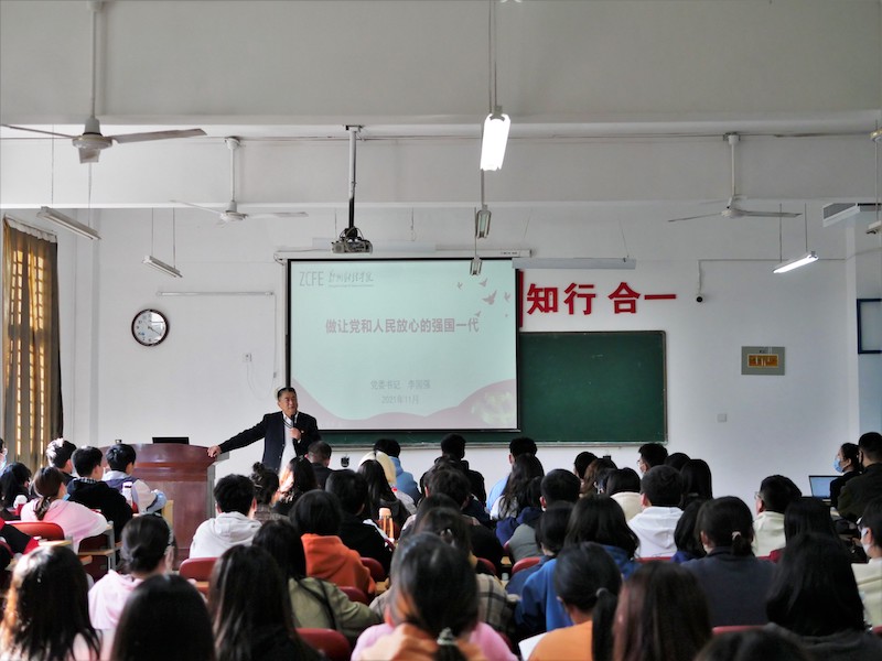 李国强以“做让党和人民放心的强国一代”为主题,从“幸逢盛世 共襄伟业”、“凝心聚力 共谋发展”、“践行初心 担当使命”三个方面为学生作了深入浅出的讲解。他强调,作为一名应用型大学的大学生应做好三件事:一要学好专业知识、打好专业基础;二要积极参加实践,做到知行合一;三要遵守学校纪律,参与课外活动。