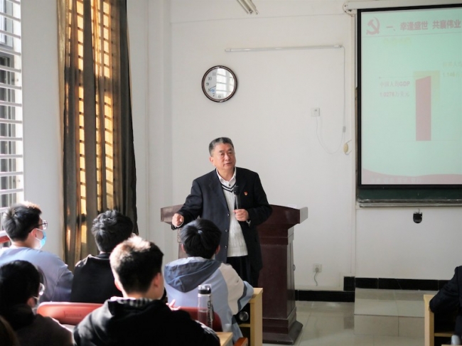 为贯彻落实全国高校思想政治工作会议精神,推进威廉希尔官网思想政治理论课改革创新,11月18日下午,校党委书记李国强在育爱楼213教室为21级环境设计专业学生讲授了一堂精彩纷呈的形势与政策课。