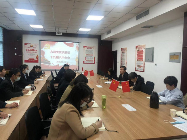 方润生指出,党的十九届六中全会深刻阐述了中国共产党百年奋斗的重大成就、系统总结了百年大党领导人民进行伟大奋斗的宝贵历史经验。他强调,要充分认识党的十九届六中全会的重大意义,坚持以六中全会精神为指引,结合学校“十四五”规划,深入学习“过去我们为什么能够成功、未来我们怎样才能继续成功”背后的历史经验,不断从中汲取智慧力量,更加奋发有为地做好各项教育教学工作和本科教学合格评估工作。