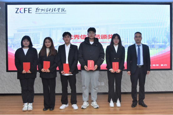 与会领导分别为受表彰的优秀学生信息员代表颁发荣誉证书并合影留念。
