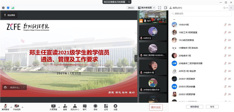 郑主任分别从学生教学信息员的遴选条件、工作职责、日常管理和奖励措施等方面作了详细说明,并提出三点要求,一是要提高认识,高度重视信息员工作,履行好信息员职责。二是要坚持服务,为老师、学生、教学管理提供服务。三是要树立典型,宣传推广学校教师好的做法和经验。