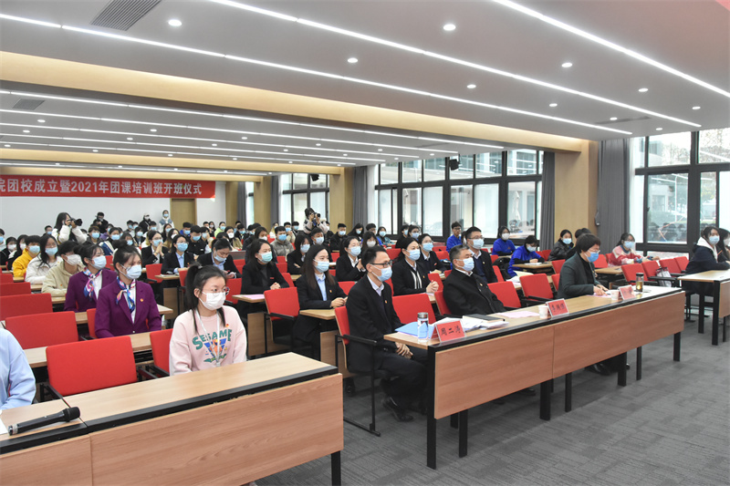为切实推动威廉希尔官网共青团工作改革创新,进一步加强基层团组织建设,强化团员青年的理论学习和实践工作能力,建设一支政治可靠、本领过硬、作风扎实、要求严格的团干部队伍。12月6日下午,威廉希尔官网在德正楼第一学术报告厅举办威廉希尔足球官网团校成立暨2021年团课培训班开班仪式。校党委书记李国强等校领导,校团委负责人、各二级学院团总支书记及校青马秋实班学员参加活动。本次活动采取线上与线下相结合的形式开展,仪式由校团委副书记余永明主持。